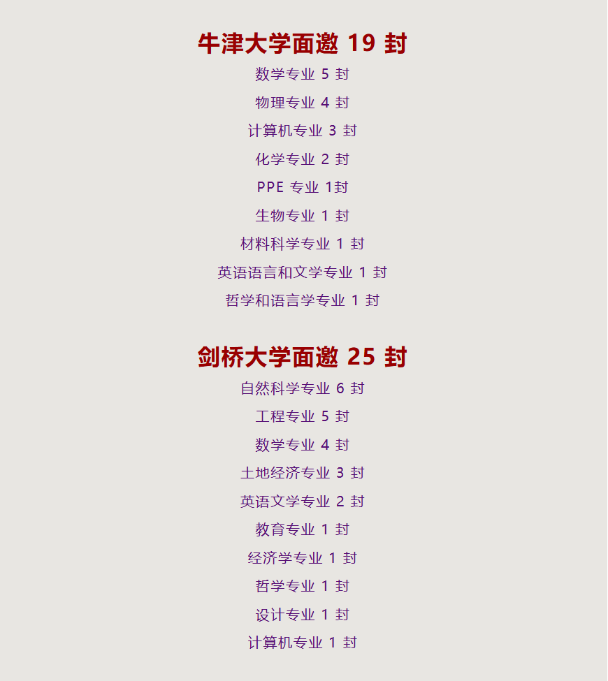 而就在上周,学校还一口气晒出今年的牛剑面邀战绩,手握整整44枚面邀录取,成绩喜人!