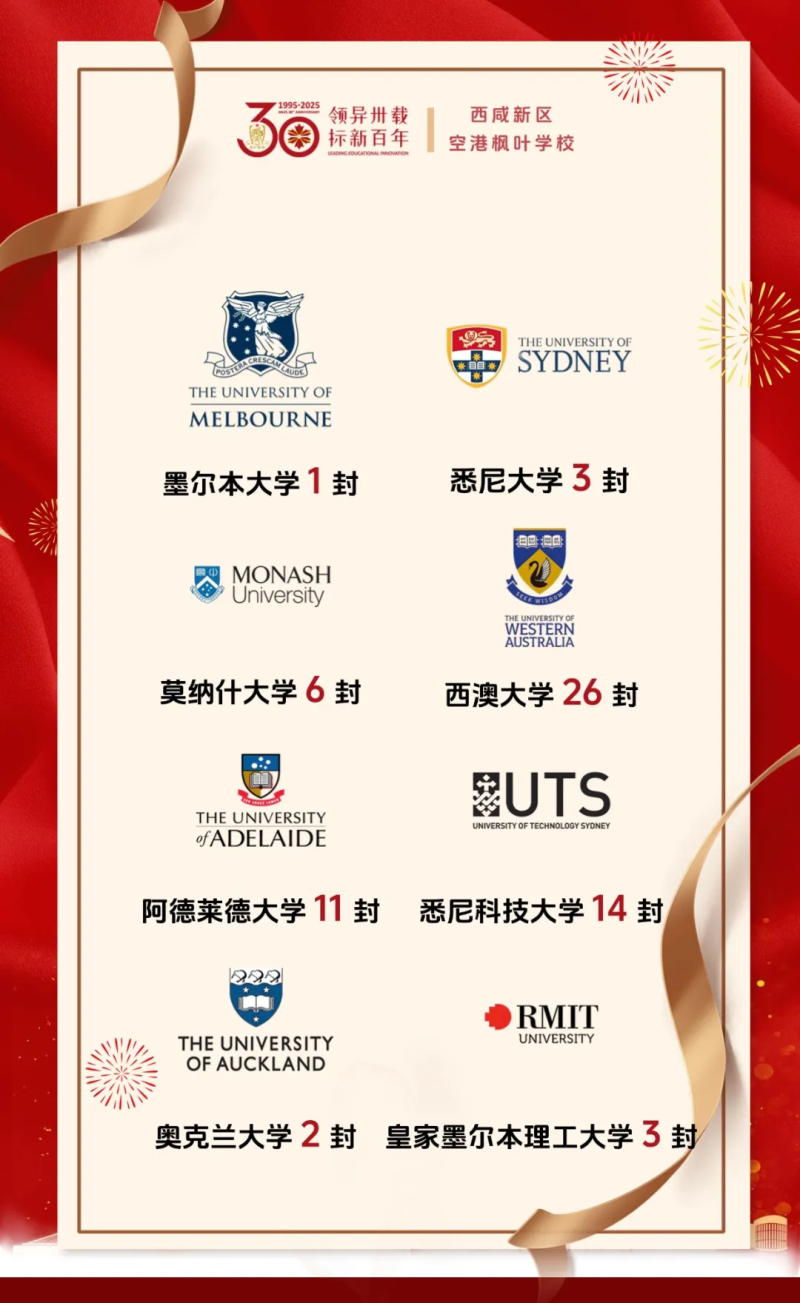 截至目前,西安枫叶世界学校课程2025届毕业生共74名,收获300份offer,每一位毕业生都拥有至少一封QS世界排名前100大学大一直读录取——这也是西安枫叶连续六年实现近乎100 %毕业生收获世界百强大学录取!