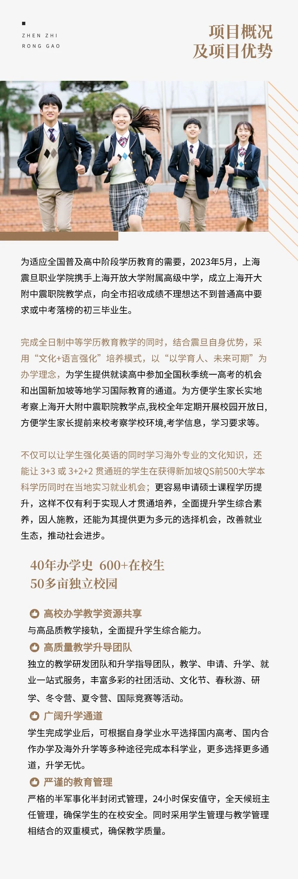 上海震旦职业学院(Shanghai Aurora College)是一所经上海市人民政府批准设立并报国家教育部备案的全日制普通高等院校。学校有校本部和美兰湖校区两个校区,其中校本部占地面积200亩、美兰湖校区50多亩, 建筑面积10万余平方米。设有公共卫生与护理、智能工程、经济管理、东方电影与人文等4个二级学院以及30个专业,还设有国际交流学院、继续教育学院、马克思主义学院和音乐舞蹈中心;建有2个中央财政支持实训中心、23个实验中心、3个市级优秀教学团队、4个上海市教委教学高地、5个上海市重点专业、3个教育部骨干专业、9个实训中心、109个校内实训室、175个校外实训基地等。