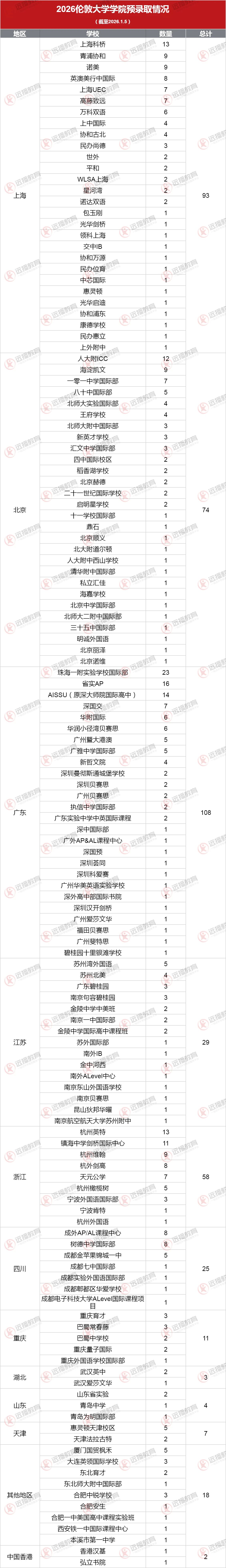 广东地区依然表现亮眼,26所学校瓜分108枚录取,暂时领跑;上海紧随其后,28所学校斩获93枚offer,展现了雄厚的国际教育实力;北京则以74枚录取总数暂列第三。
