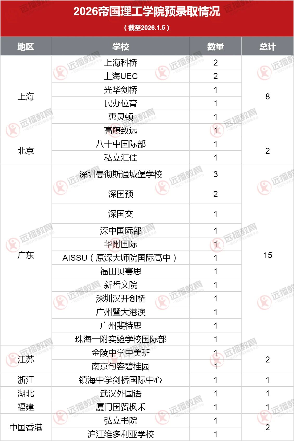 截至目前,我们统计到帝国理工已向中国国内学生发放了32枚预录取offer,具体分布如下: