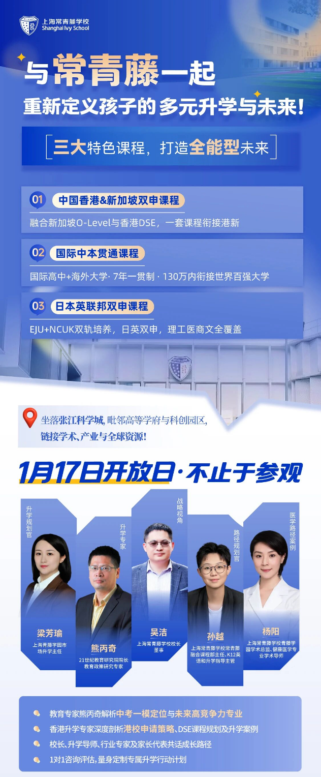 怕娃错过机遇?怕规划错方向?本周六8:30-15:30.上海常青藤学校开放日直接把港校升学规划一次讲透!