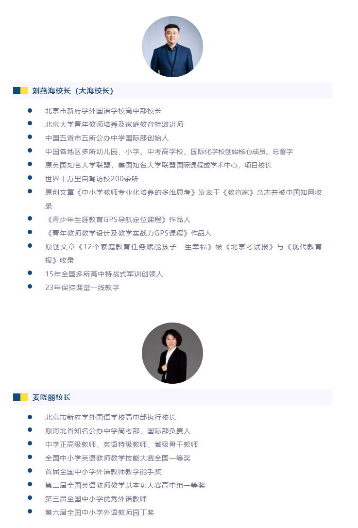 北京市新府学外国语学校是经北京市顺义区教委批准成立,具有招收中、外籍学生资质的全日制寄宿兼走读的双语特色12年一贯制国际化学校。学校实施多元化办学战略小班教学,突出生涯教育和生存教育特色、尊重学生共性及个性发展。培养“德智体美劳”全面发展的未来国际化人才。
