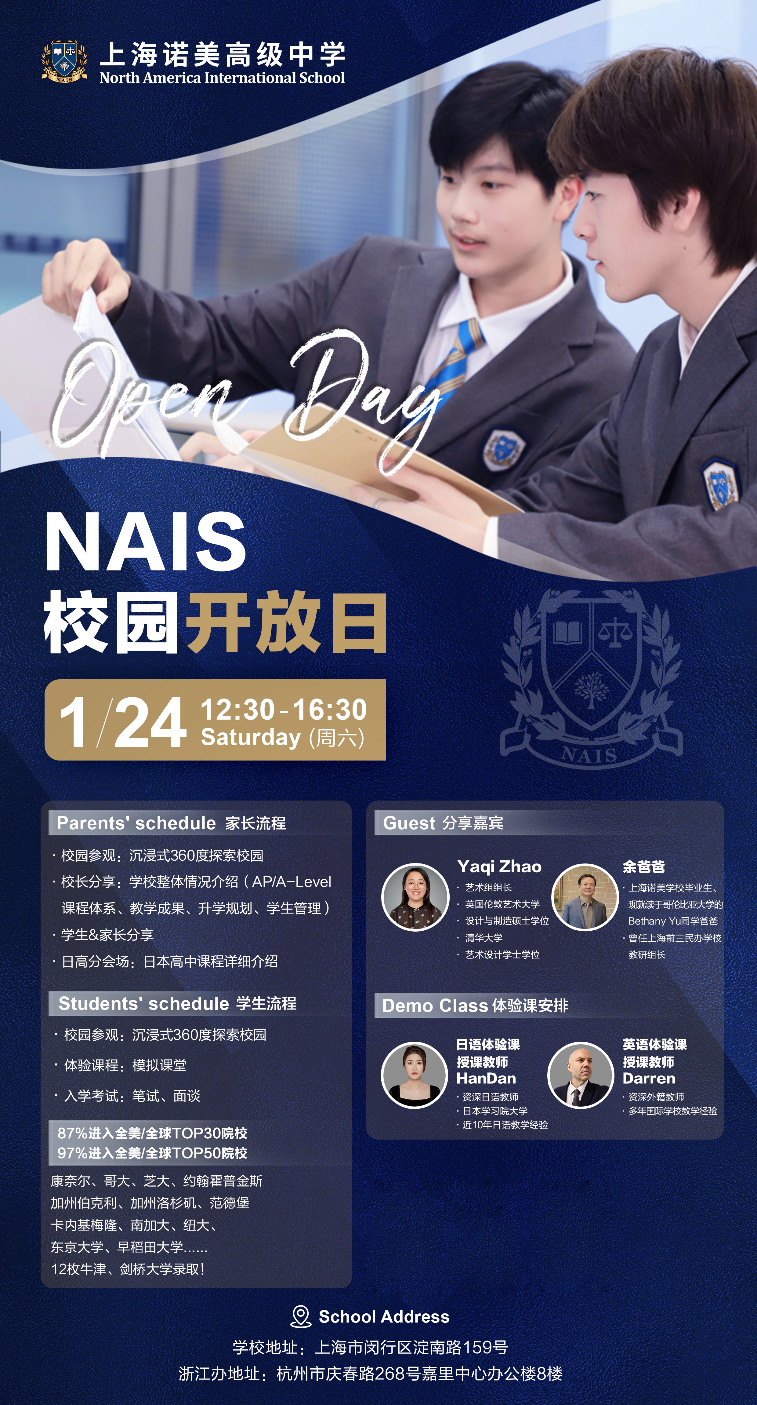 学校具备聘请外籍教师的资质,所有外教均经过政府部门严格把控,合法办理就业许可及签证;所有中方教师均具备教师资格证,且具备丰富的国际教学实践经验。为了培养充分具备21世纪全球胜任力核心素养的未来人才,上海诺美学校课程体系基于“中国人文与社会”“西方人文与社会会”“STEM”“艺术与体育”四大模块,核心课程包括美高+AP、英国IGCSE+A-Level课程与日本课程;并另设学术科创、艺术、音乐、体育四大特色课程,实施个性化培养,助力学生升入全球范围院校。