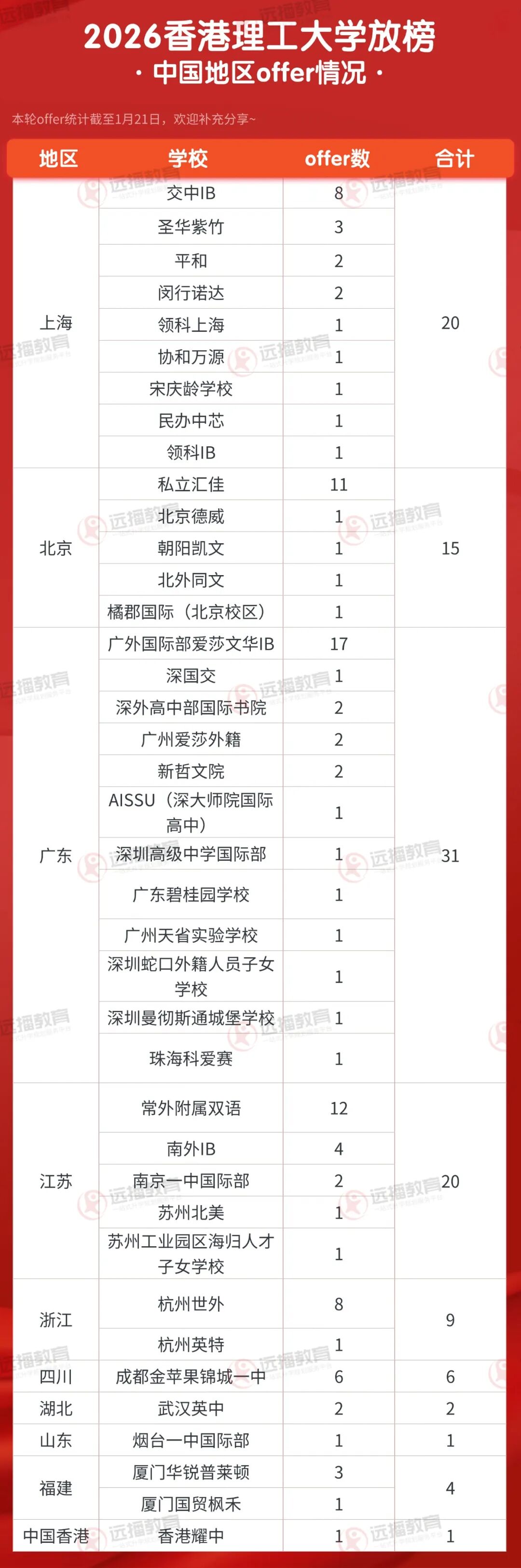 PS:以下统计截至1月21日11:30.港校offer持续发放中,欢迎大家补充分享。