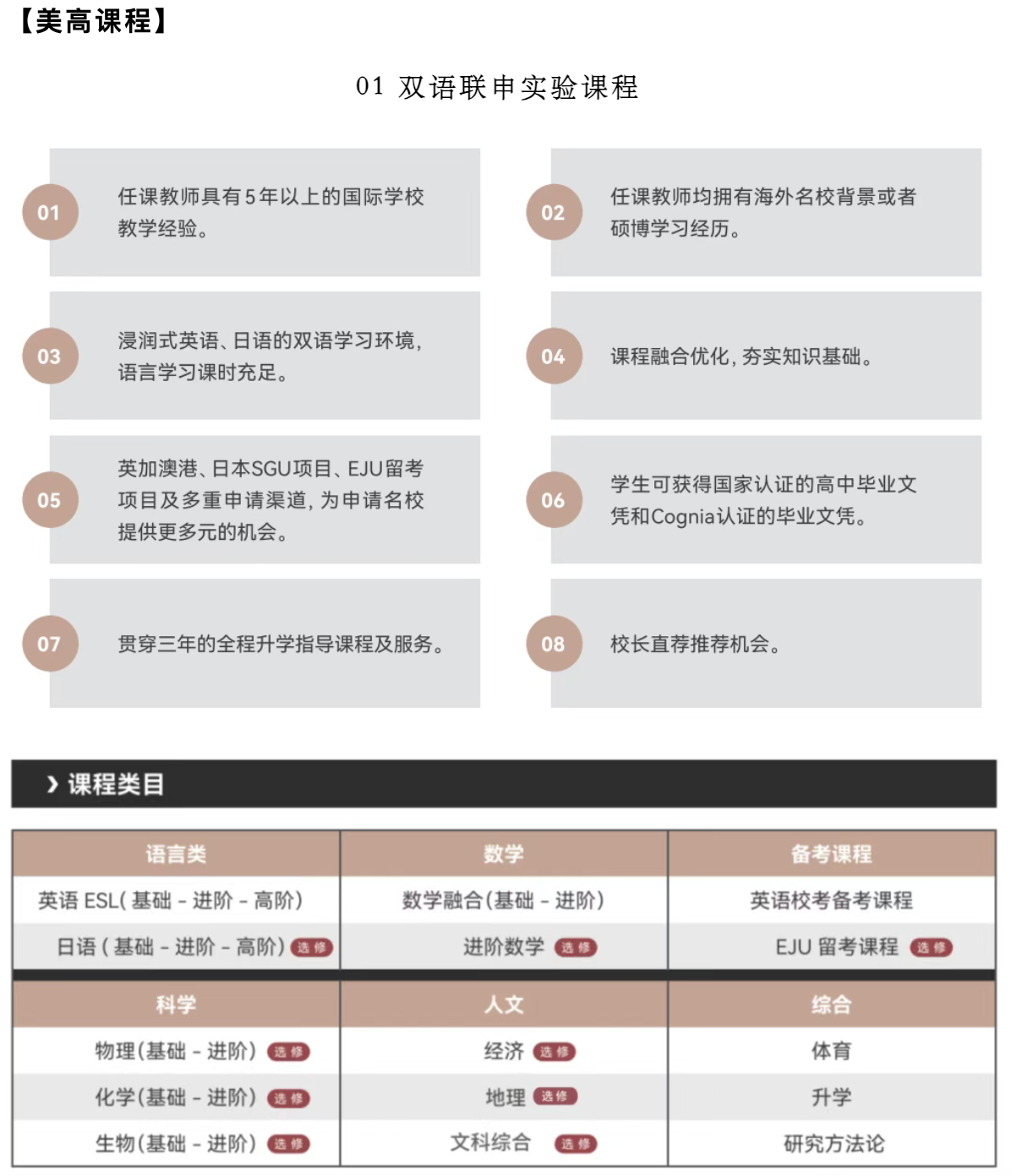 双语联申班,由于涉及到的去向学校相对多样化,提前规划显得尤为重要。升学在9升10的暑假,为学生和家长提供选课答疑,帮助学生按照自身的情况和目标,选择适合的课程。