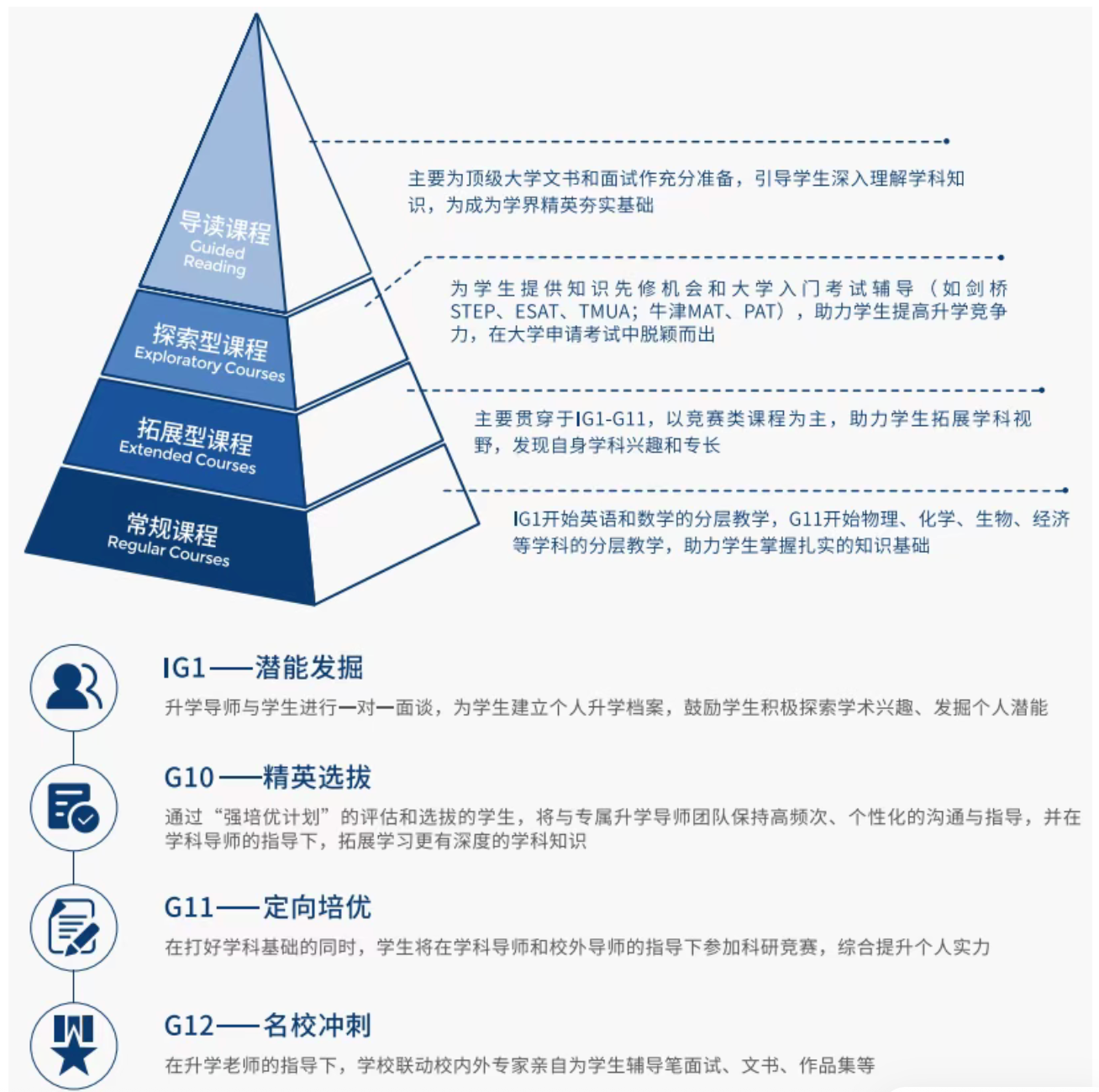 学校在学生在升入G11的阶段,选拔有能力冲击牛剑的学生进行强培优,除了常规课程外,学校出资联动校内外资源提供学科培优、竞赛培训、文书指导、牛剑笔面试辅导等支持。