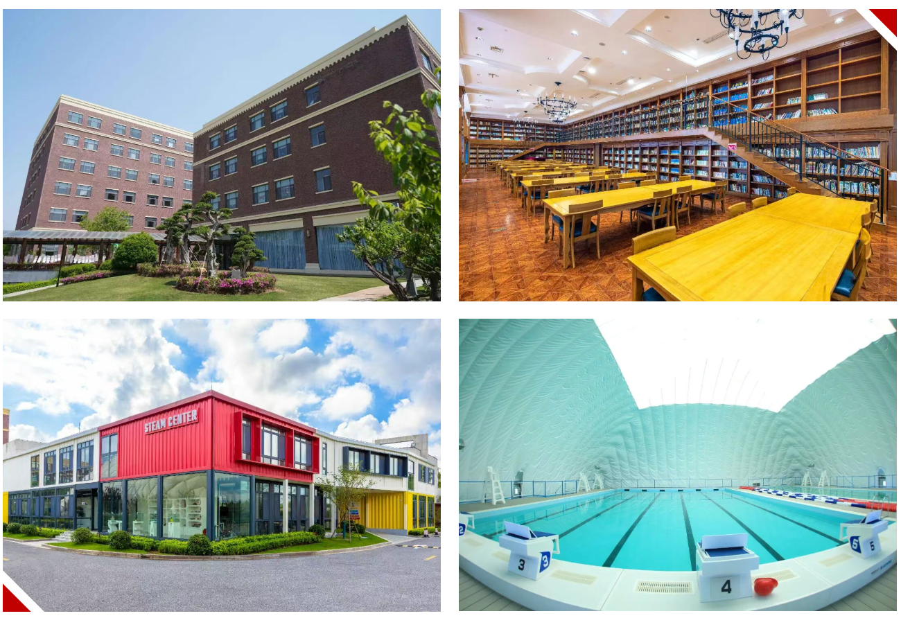 哈利波特式图书馆、气膜恒温游泳馆、STEAM中心、皮划艇码头、四季流转的绿色花园等,让每一步驻足都成为学习,每一次停留都滋养心灵。