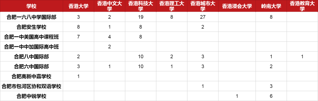 在香港方向,合肥国际学校同样表现出色,已统计到158枚录取,其中包括24枚港大录取。