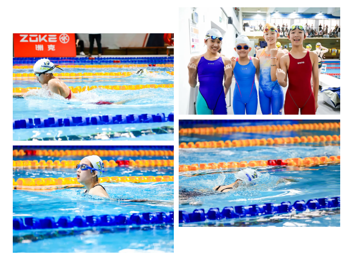 团队接力高光时刻:在男子 11-12 岁组 的 200米自由泳接力和200米混合泳接力中,我们的四位男生组成了强力战队,分别游出了 2:01.82 和 2:10.00 的优异成绩。凭借默契配合,他们分别斩获自由泳接力第三名和混合泳接力第二名的佳绩!