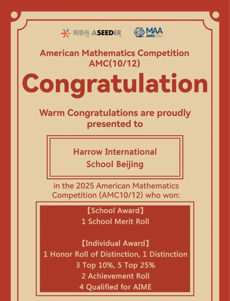 深冬虽至,哈罗北京捷报频传。从哈佛 BPC 商赛的运筹帷幄,到英美澳三大数学竞赛的全球霸榜,再到 ISAC 泳池里的劈波斩浪,哈罗北京学子在世界 级的竞技舞台上展现了惊人的爆发力。