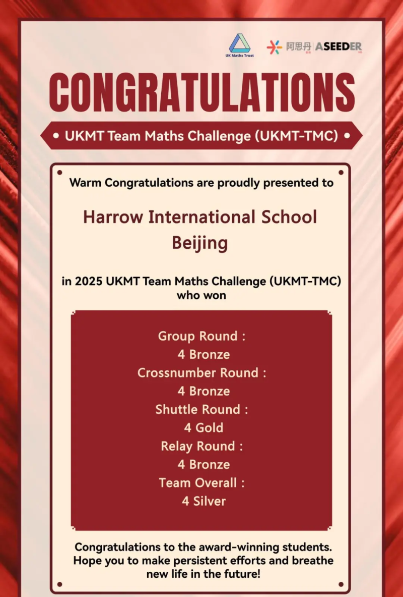 数学不仅是解题,更是团队的艺术!在刚刚结束的英国数学协会团队挑战赛中,哈罗北京代表队凭借卓越表现,斩获佳绩,在时空穿梭竞赛环节获得金奖!