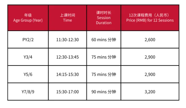 费用包含全套足球装备(球衣、球裤、球袜、护腿板)、课后小食、课程结课证书以及结业奖项。