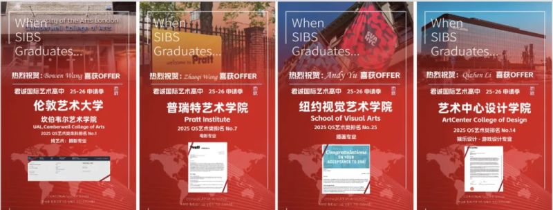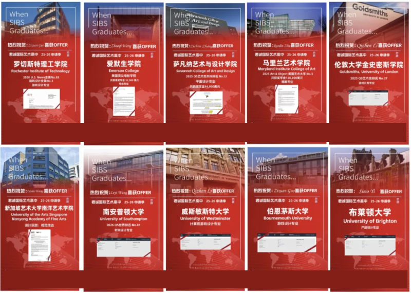 其中不乏全球艺术类本科排名第 一的伦敦艺术大学、艺术院校普瑞特艺术学院、纽约视觉艺术中及艺术中心设计学院等众多学校,生动诠释了学校卓越的艺术升学成果——我们不仅培养未来的科学家和工程师,也同样致力于孕育改变世界的艺术家、设计师和创意产业领 袖。