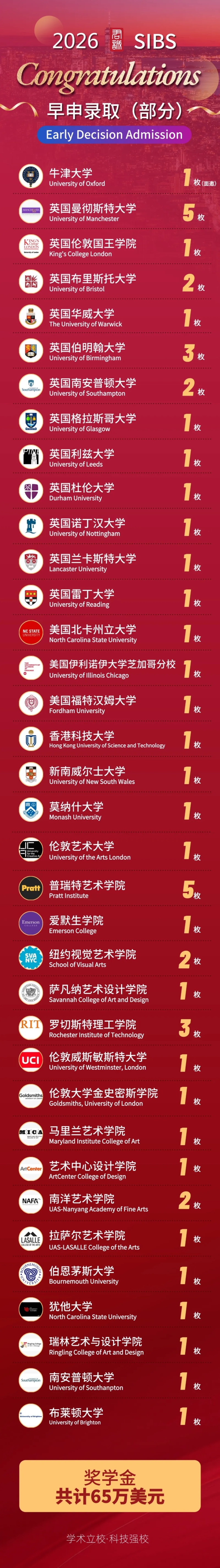 截至2025年12月25日,君诚学校在学术与艺术领域收获来自英国、美国、新加坡及中国香港等世界学校录取数十封,总计获得奖学金65万美元,约合人民币近500万元!