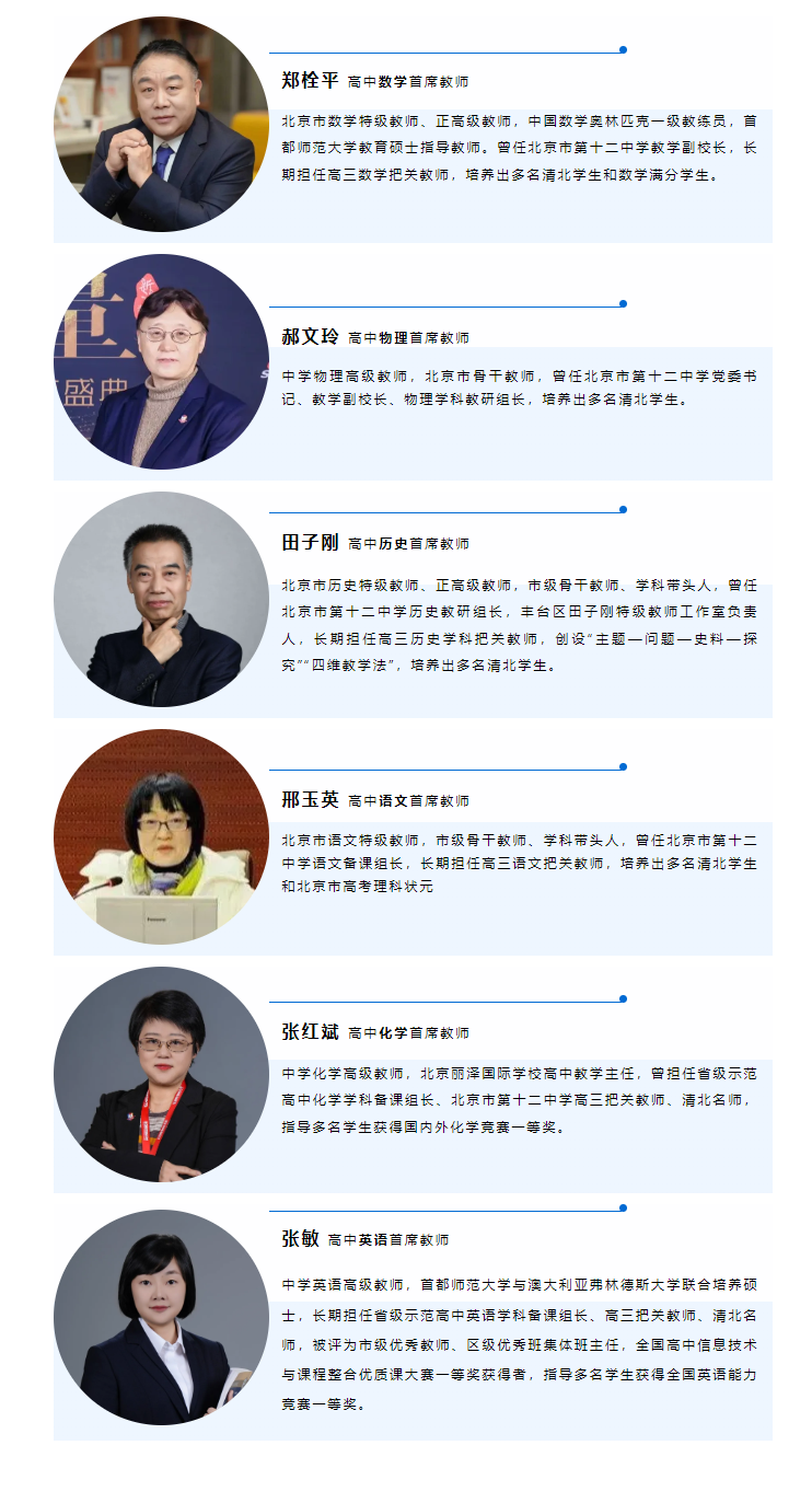 教师团队:专业的教师队伍来自北京市首批示范高中北京市第十二中学等一流学校,这些教师屡创高考辉煌业绩。
