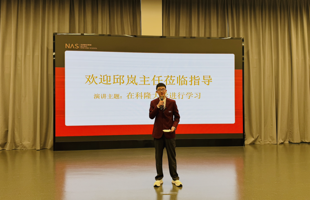 分享会伊始,北京新亚A - Level德语班钱同学以全德文进行开场致辞。其清晰流畅的德语表达、从容自信的精神风貌,不仅展现了学校德语教学的扎实成果,更赢得了邱岚主任的高度认可与现场阵阵掌声,为整场分享会拉开了精彩序幕。