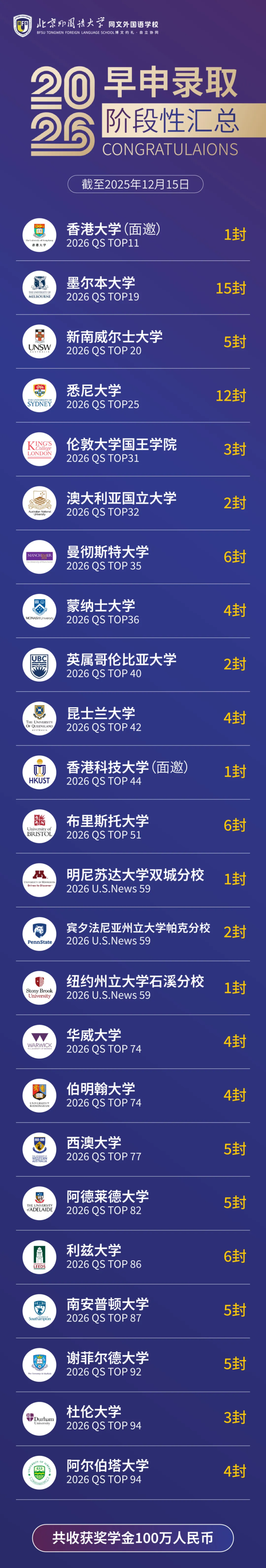 截至2025年12月15日,本校2026届学子在早申阶段捷报频传,取得了令人瞩目的优异成绩!