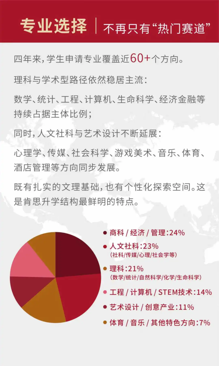 稳定输出,是一所学校真正的底色。过去几年,成都狄邦肯思学校的升学节奏始终保持稳定。连续四年实现100%海外大学录取率,每一位学生都收到了属于自己的大学录取通知。其升学方向从英国G5、美国综合性大学,拓展到加拿大、中国香港及更多国家和地区;专业路径从数学、工程、经济等学术研究型方向,延伸至艺术设计、体育、酒店管理等特色专业领域,选择不断拓宽,走向更加多元。