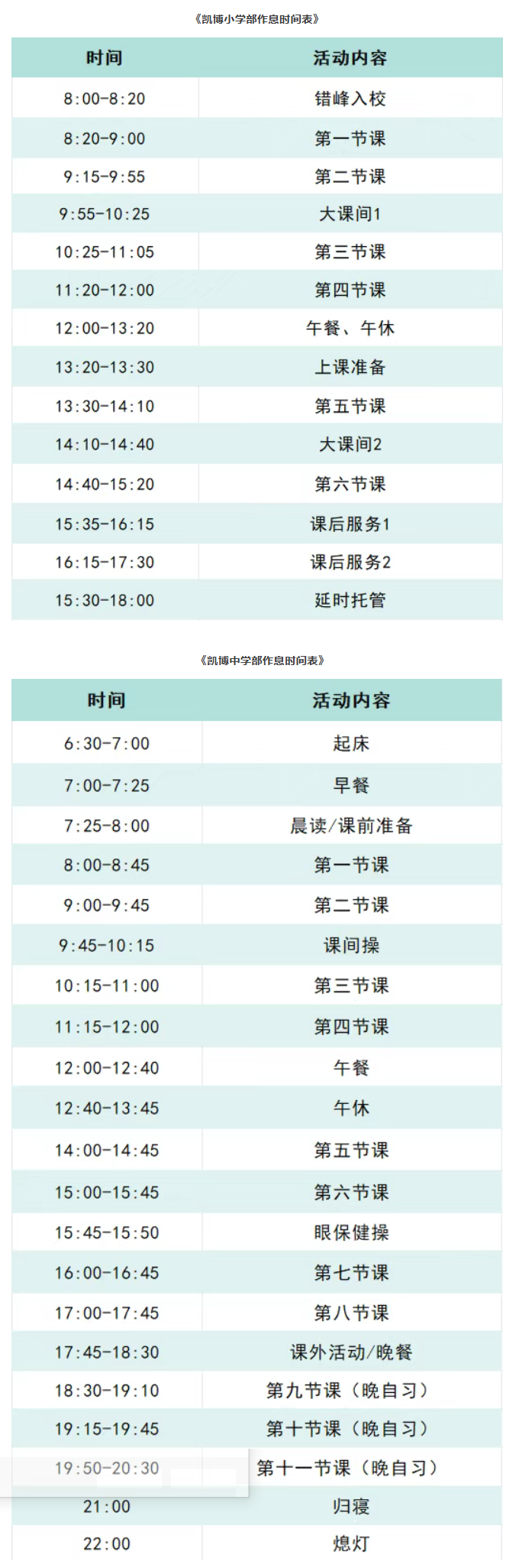问:凯博学生作息时间如何安排?