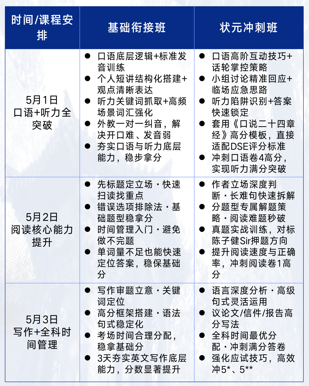 2026年,HKDSE竞争愈发激烈,英文作为核心拉分科目,五一假期成为考生弯道超车的关键时期。北京凯博遵理HKDSE课程中心将于5月1日 - 5月3日重磅开营,考生无需远赴香港,也无需花费高价,在家门口就能获得遵理香港总部师资的教学服务。