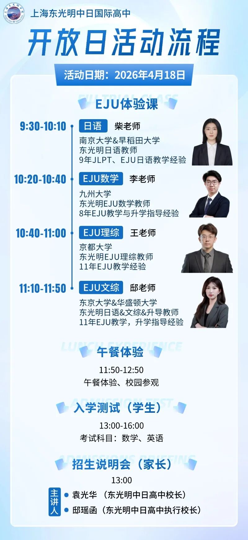 2. 参加EJU体验课,见证东光明师资学术风采。