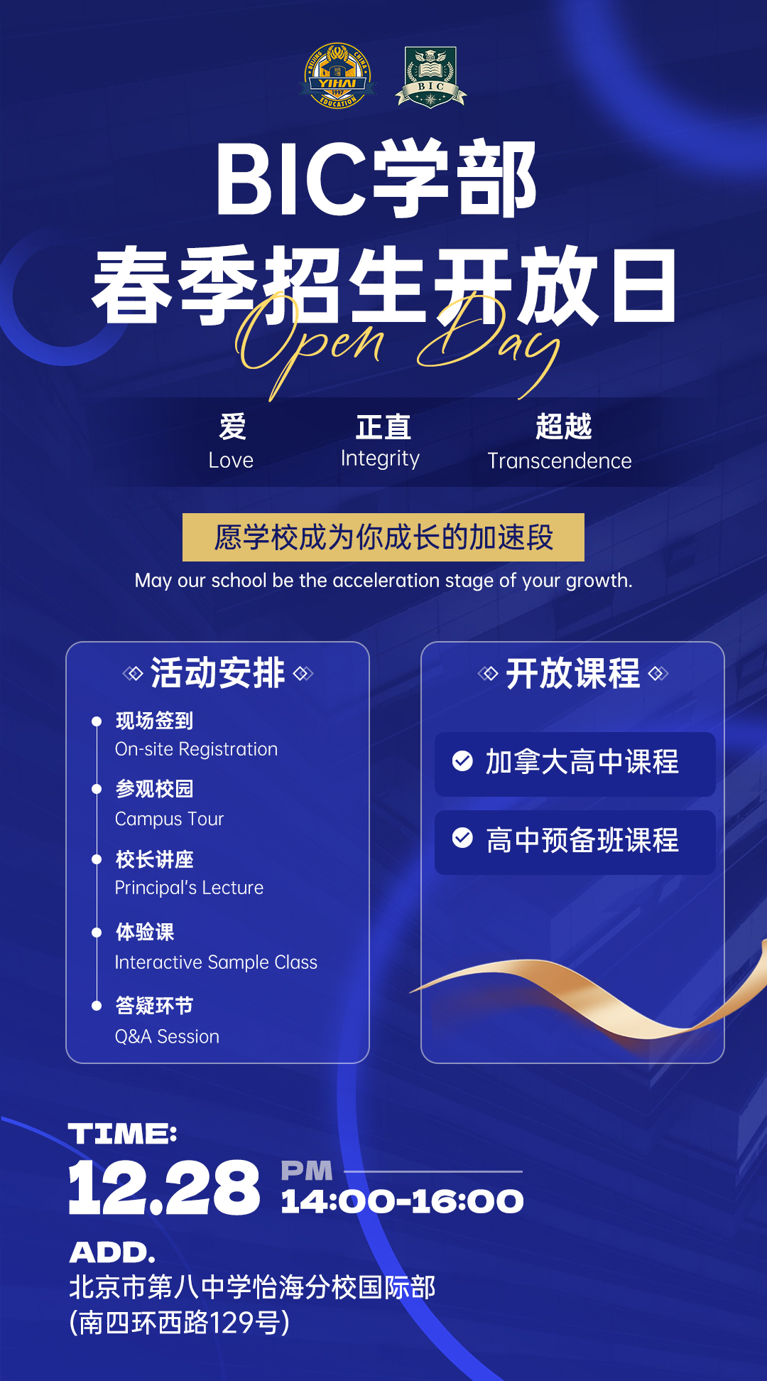 国贤BIC高中学部1月26日校园开放日邀您参加!