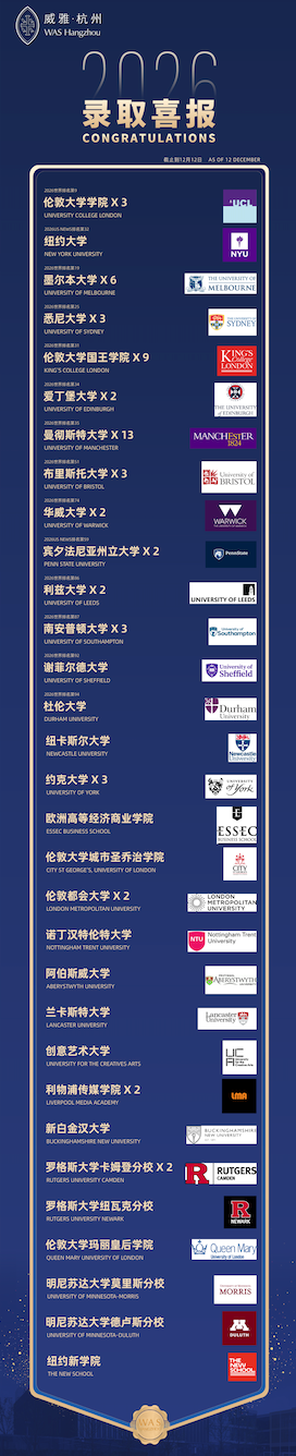 再次恭喜所有获得面试邀请和录取的杭州威雅学校学生。申请季仍在继续,期待他们创造更多惊喜。