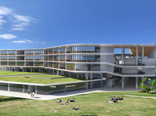 校园占地200亩,位于海口市中心与南部生态区交汇处,在设计布局与功能使用上有别于常规中学,注重学习的专业性、生活的便利性,强调学生间团结协作的社交能力,创设多样性的微环境空间,为师生提供舒适、环保、宜人的生活学习环境。