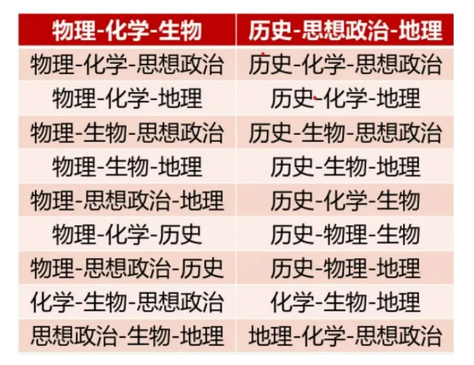 4.有些组合学科之间的关联性非常小,学科之间的知识体系完全不同,学生的学习方法完全不同,这种组合始终是很难学好的。如:物政地、历化生等。请家长慎重选择。
