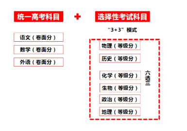 自天津市实施新高考改革以来,采用的是“3+3”模式。第一个“3”指统一高考的语文、数学、外语三门必 考科目;第二个“3”则指从思想政治、历史、地理、物理、化学、生物6门科目中任选3门作为等级性考试科目。