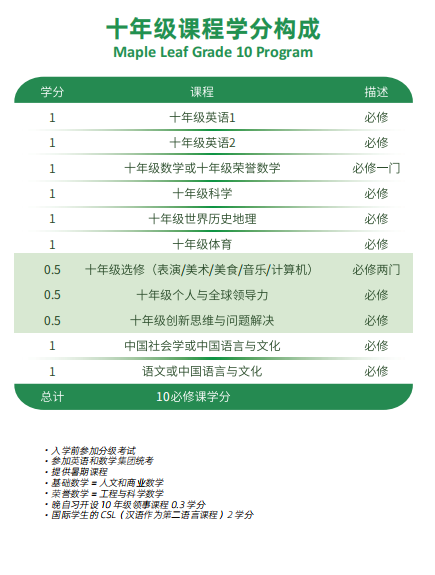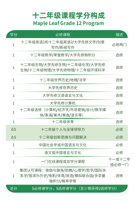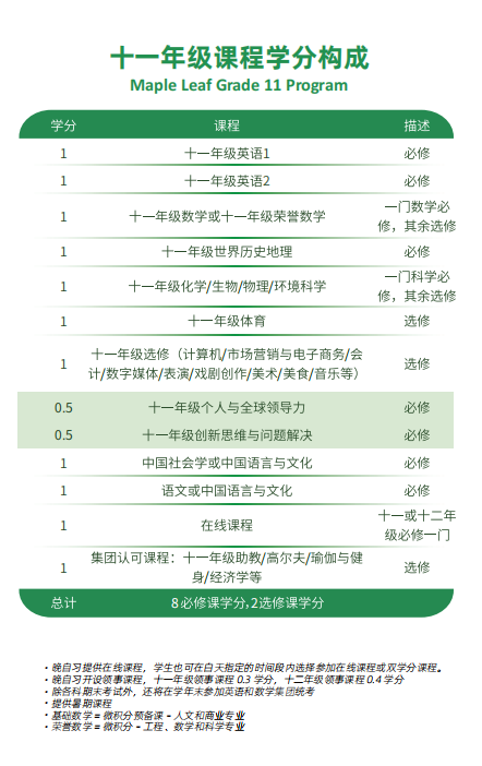 课程名称:枫叶世界学校课程