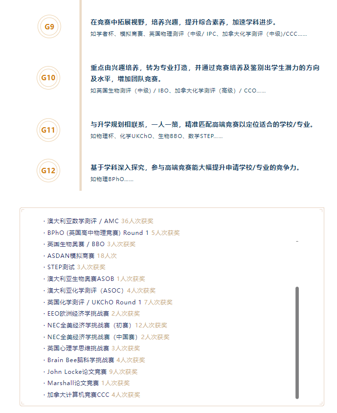 剑桥国际中心以四年竞赛思路,帮助学生循序渐进,由浅入深地培养竞赛策略,提高学生竞争力。