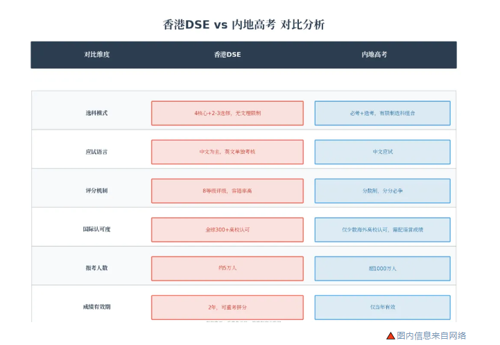 HKDSE课程具有多方面优势。它是全球唯 一中文作答的国际课程,70% - 80%知识点与国内高中课程重合。考试成绩采取合并制度,有两年有效期,取两年最 好的单科成绩合并作为申请成绩。考生不限户籍和学籍,考试成绩被中国香港世界学校广泛认可,海外高校有300余所,港籍学生还可考取国内165所高校。