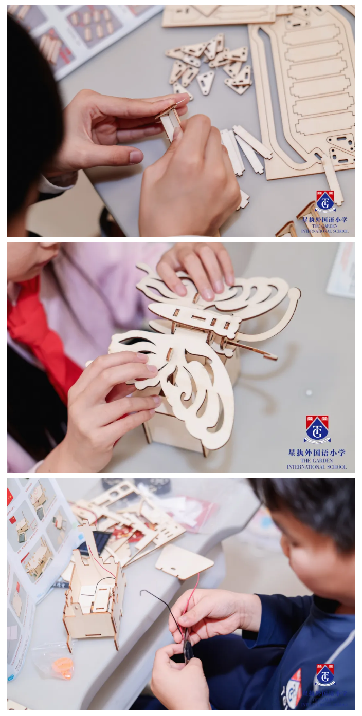 这份“硬核科技”的乐趣同样属于每一位星执外国语小学的学生。开学第一天,每位学生都收到了一份神秘礼物——“科技盲盒”。盲盒中可能是蕴含精密机械之美的手摇“蝴蝶”,可能是考验空间思维的卷帘门模型,也可能是日常生活中不可或缺的家电核心组件。一场全员参与的“科技盲盒组装PK计时赛”在校园各处火热开展,比赛比的不是速度,而是专注、思考和解决问题的能力。那一刻,校园里满是专注的神情和灿烂的笑容,这正是新学期最美的模样。