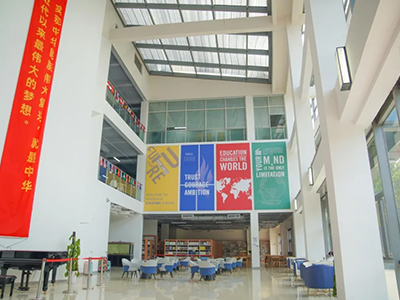 学校总占地面积约为60亩,建筑面积约20000㎡,包含图书馆、运动气膜馆、物理实验室等