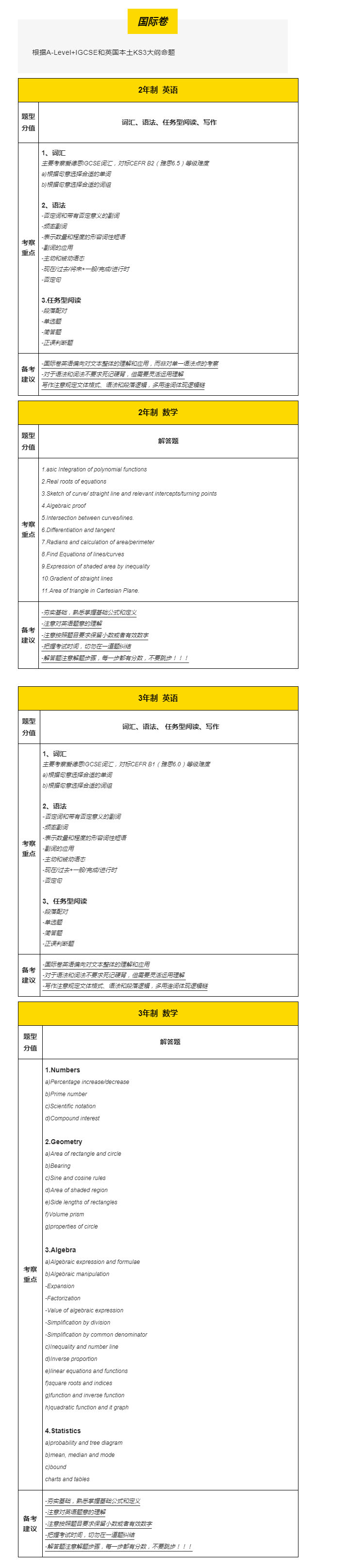考试形式:笔试(英语+数学)+外教面试口语