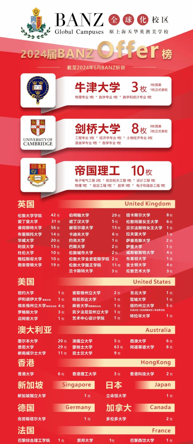 捷报频传,全面开花,BANZ不仅再一次实现了「牛剑大满贯」,更是让充分利用海内外资源托举,多元升学通道保障,让更多同学从BANZ走进世界学校,追逐更广阔的梦想。