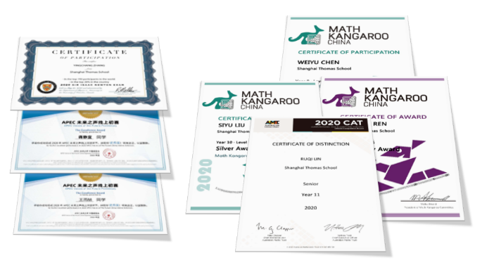 此外,办学以来,安生学子也收获了各项国际大奖,包括:英国物理奥林匹克挑战赛、加拿大滑铁卢牛顿物理竞赛、北美驯鹿数学竞赛、澳大利亚袋鼠数学竞赛、加拿大初级化学奥赛、澳大利亚数学思维挑战(AMC)、欧洲经济学奥林匹克、APEC未来之声、联合国可持续发展目标英语演讲比赛、上海市中学生英语演讲比赛等。