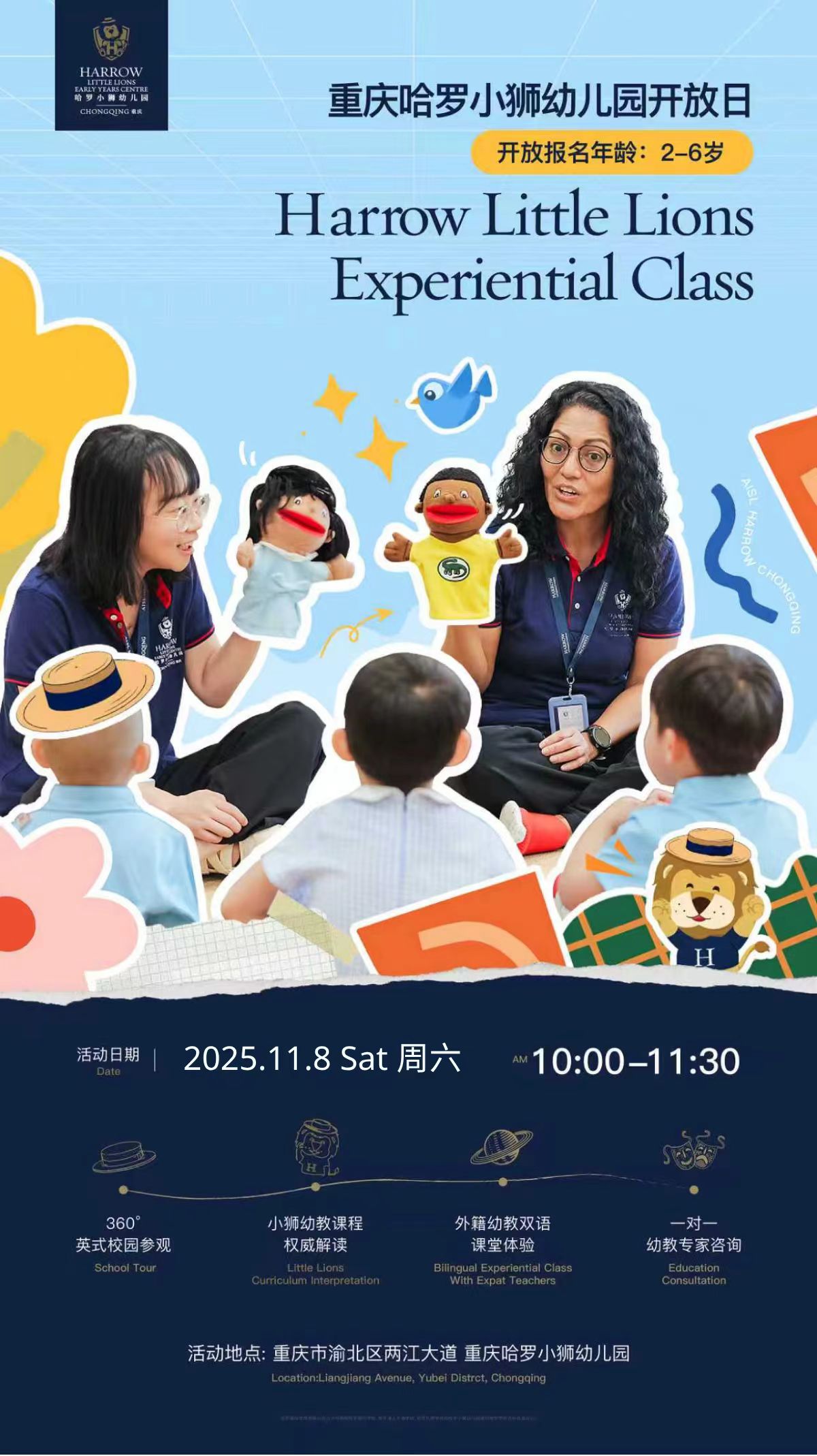 活动地点:重庆市渝北区两江大道 重庆哈罗小狮幼儿园