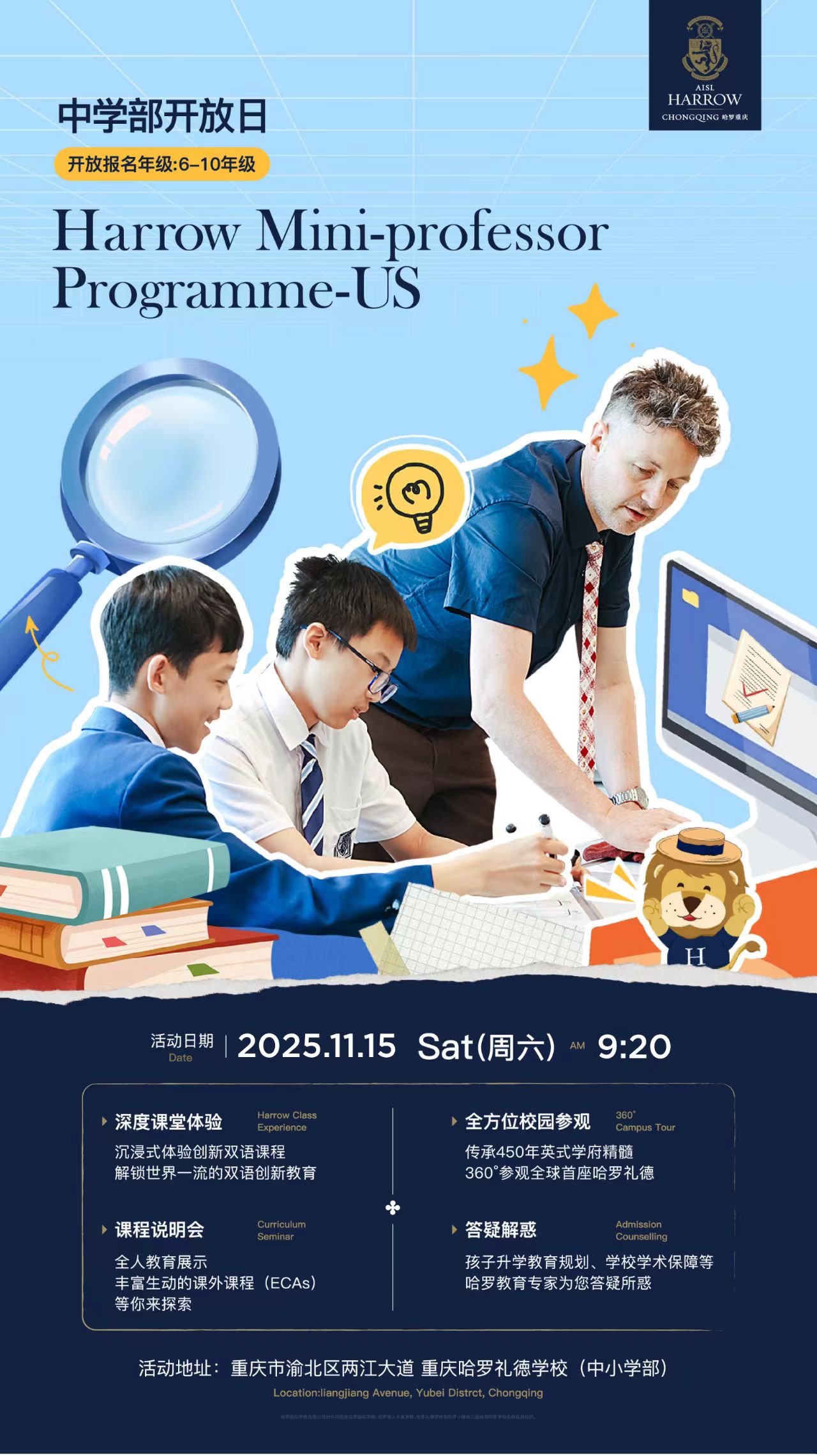 活动地点:重庆市渝北区两江大道 重庆哈罗礼德学校(中小学部)