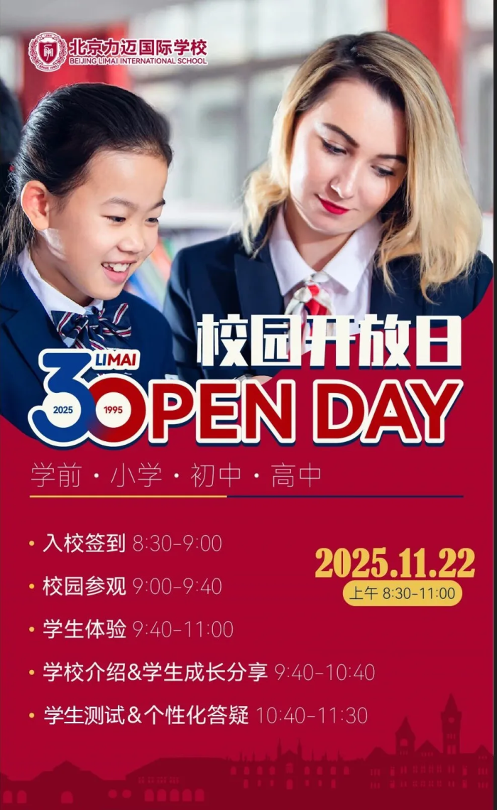 在为孩子挑选合适的教育道路时,家长们往往会感到迷茫。究竟什么样的学校能为孩子提供卓越的教育,助力他们走向美好的未来呢?11 月 22 日(周六),北京力迈国际学校将举办校园开放日活动,为家长和孩子们提供了一个深入了解这所学校的好机会。