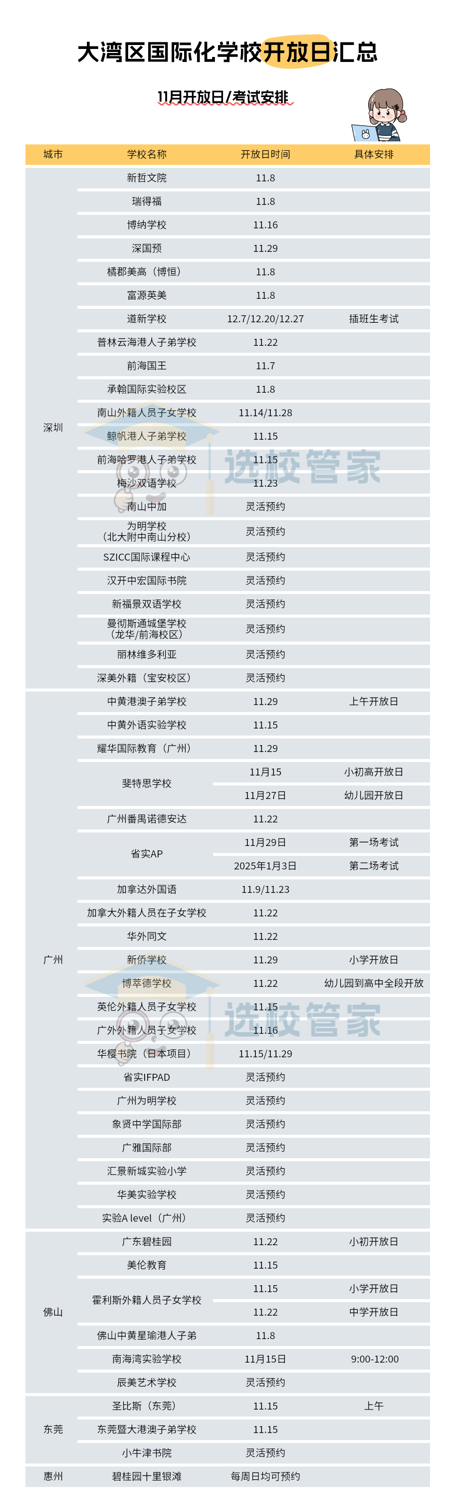 开放日+考试安排详情,点击预约学校