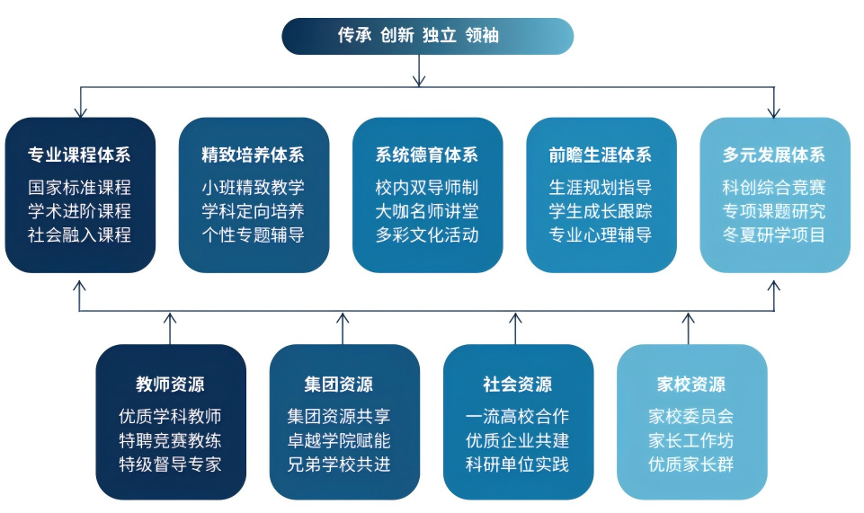科德高级中学紧跟国家重大战略需求,以国家核心课程为基本纲领,融合雅力教育“传承、创新、独立、领袖”的育人理念,开设强基课程和融合课程,打造“强基础、重融合、倡探究、全过程”的雅力教育生态圈,实现为国家“双一流”重点院校输送人才的办学目标。在这里,学校是学生潜能的挖掘者,是学生价值观的奠基者,更是学生丰富精神世界的陪伴者。