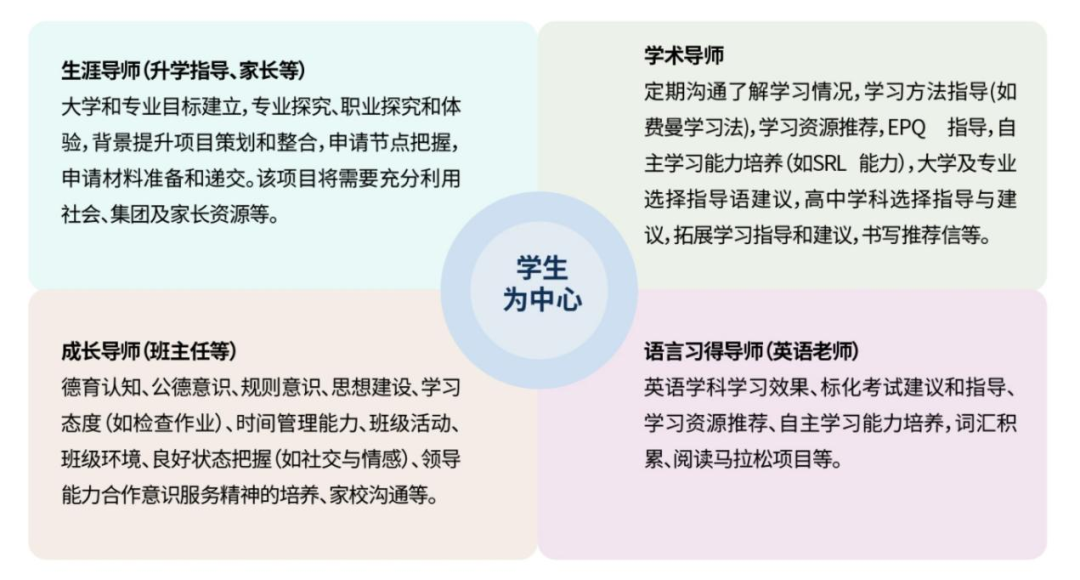 学校关注到学生成长生活的方方面面,精益求精,追求完美。学术发展层面,在高效课堂之外,实行个性化辅导,强化学生薄弱学科或提升学生优势学科。心理健康层面,理想信念指引、心理调适教育、学习发展指导、健康生活引领全覆盖,在思想上、生活上给学生以指导、鼓励和帮助。生涯规划层面,实行一生一档案,建立前瞻个性升学指导,提前布局升学规划。