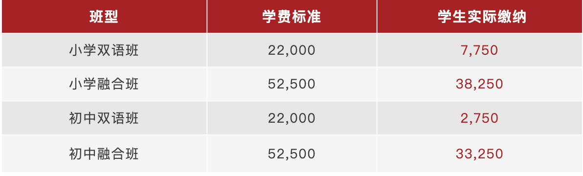 2025 - 2026 学年,学校义务教育阶段继续纳入政府购买学位,学生只需支付政府购买后的差额部分学费。以下是具体的学费标准: