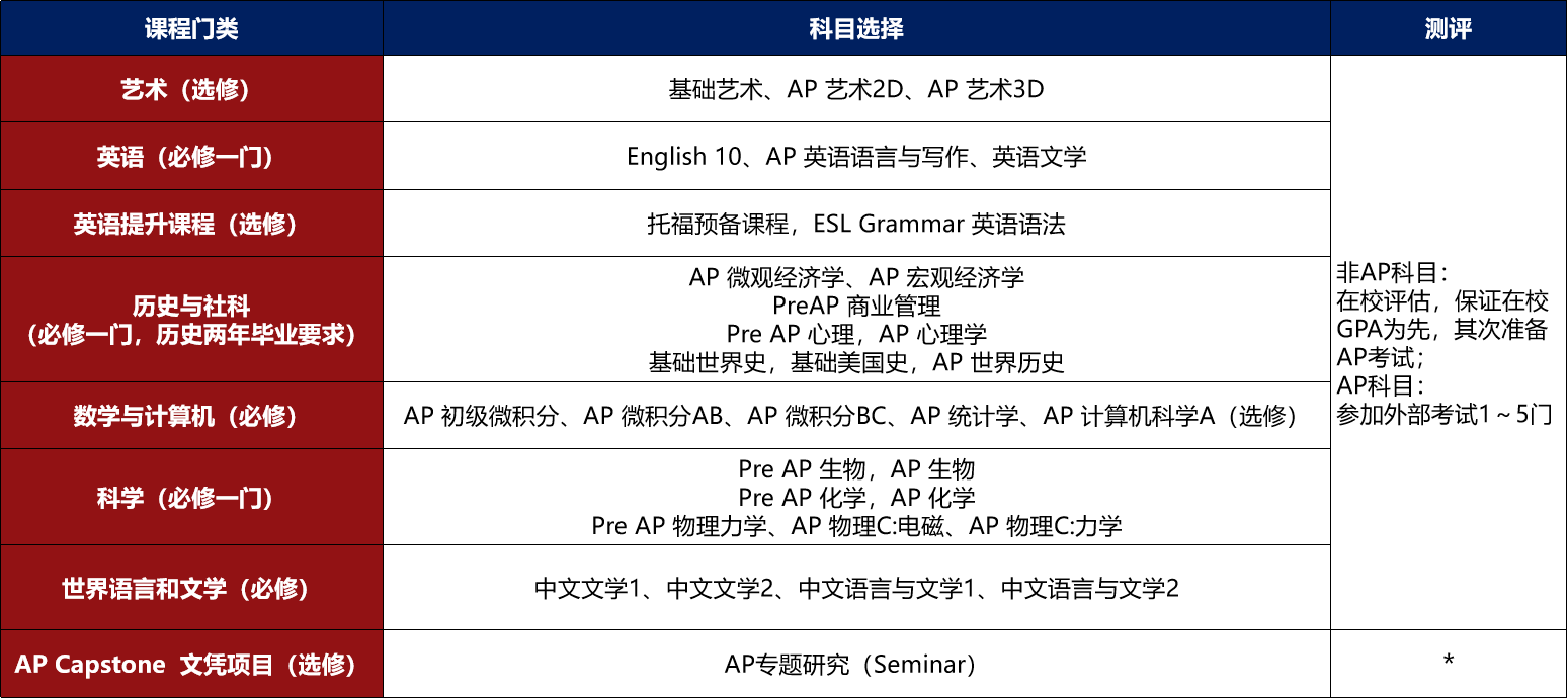 {IB&美高AP课程设置}