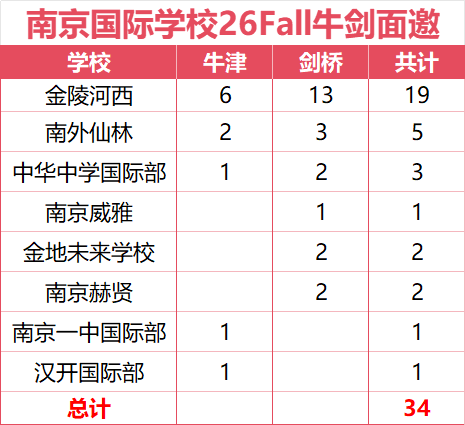 截至发稿前,已统计到南京地区有8所学校拿到2026Fall 牛剑面邀offer,共计34枚!