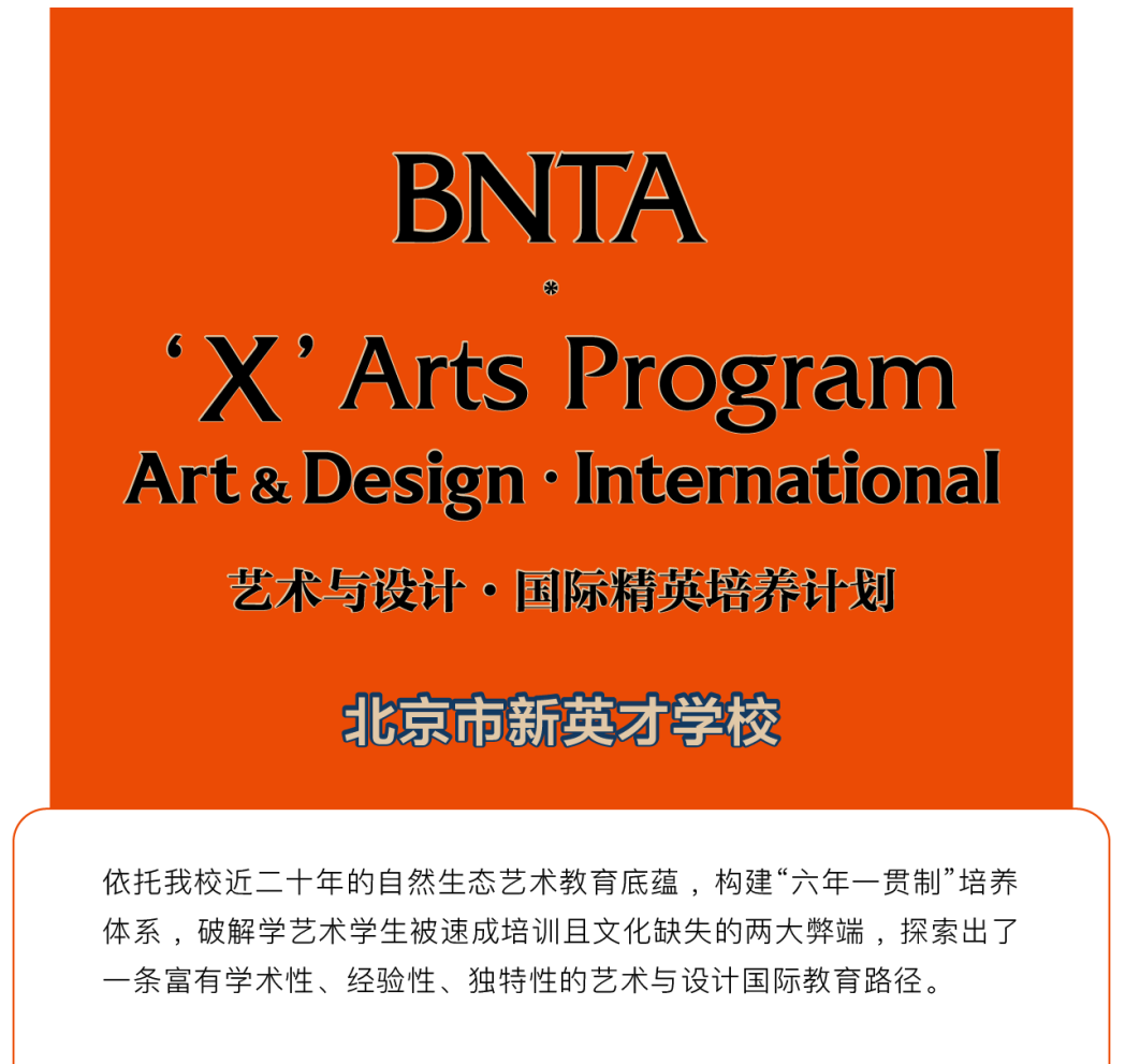 承载着北京市新英才学校打造高品质、国际化艺术教育平台的愿景,依托在艺术教育领域和国际化艺术人才培养方面多年丰富的办学经验,新英才学校打造了一条富有实验性且独具特色的艺术教育路径——既符合中国学生特点,又契合国外艺术院校普遍要求的课程体系,为学生提供更专业的课程指导和方向引领,前瞻性地奠定学生未来长远的竞争优势。