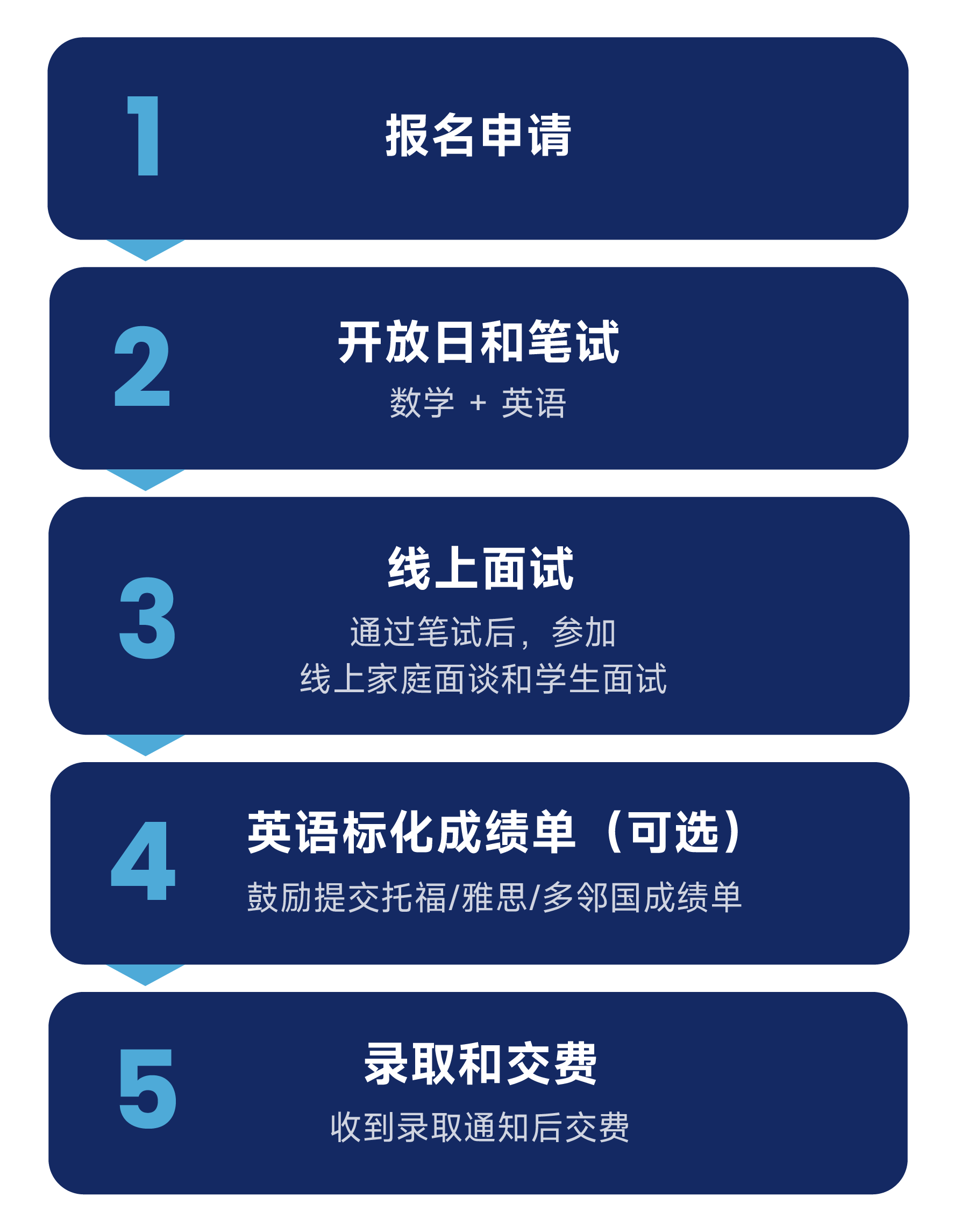 10年级及以上学段插 班生,请通过邮件、微信或电话联系招生办公室咨询测评要求。
